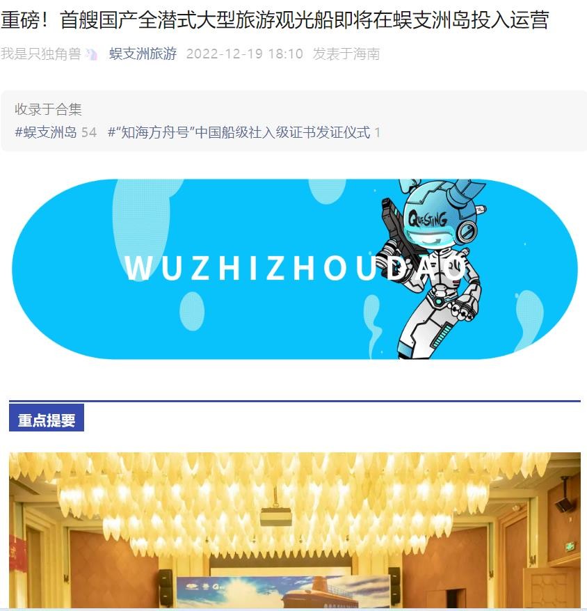 蜈支洲島媒體報(bào)道潛艇投入運(yùn)營(yíng)